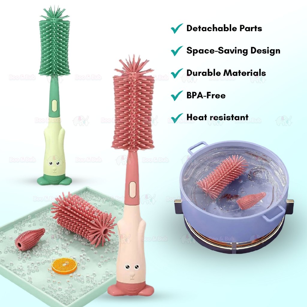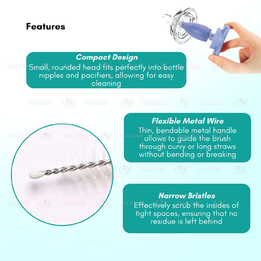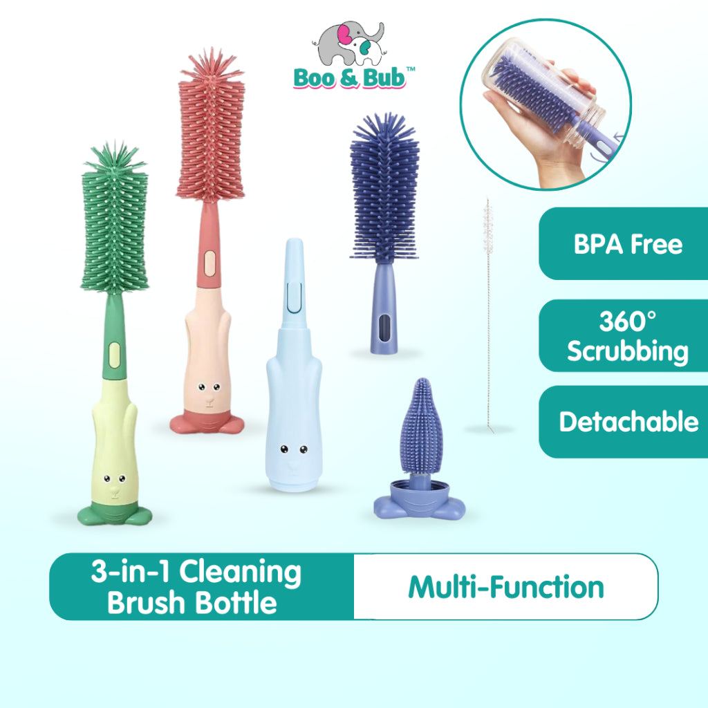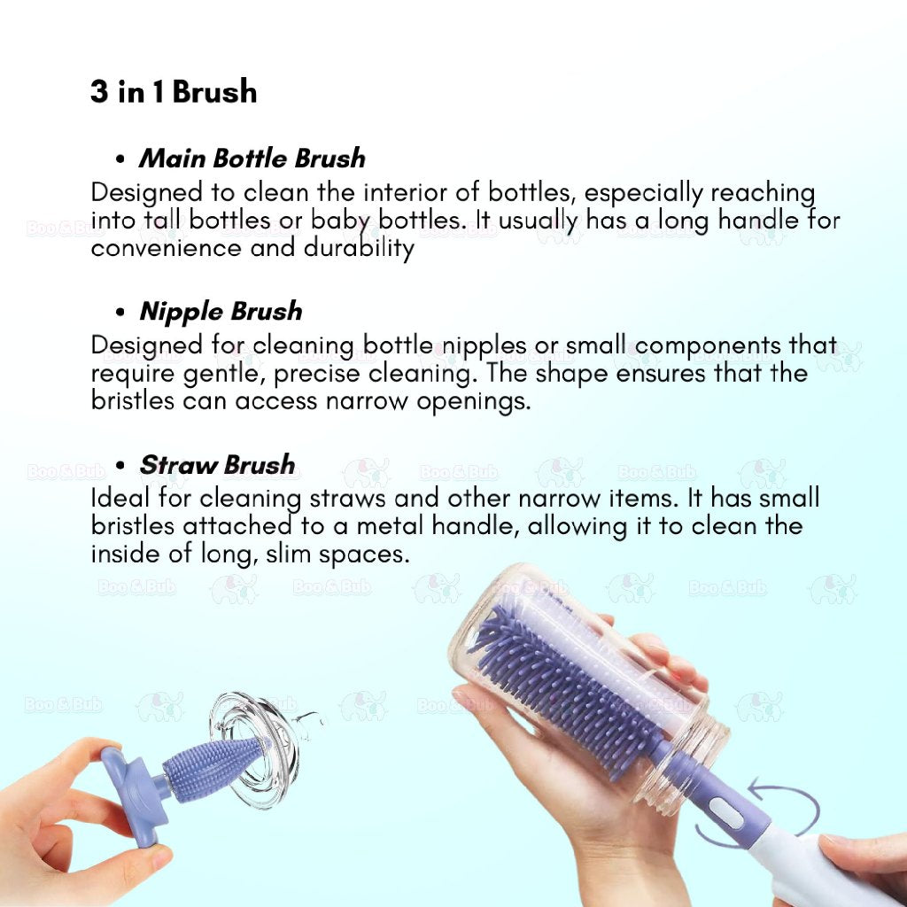 Boo&Bub 3in1 Cleaning Brush | Baby Bottle Brush Set | Cup Cleaning Tool Water Bottle Cleaner