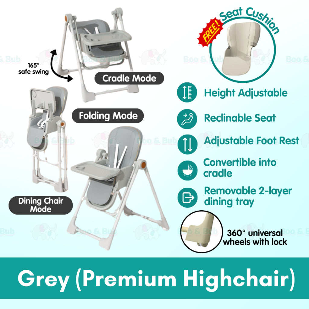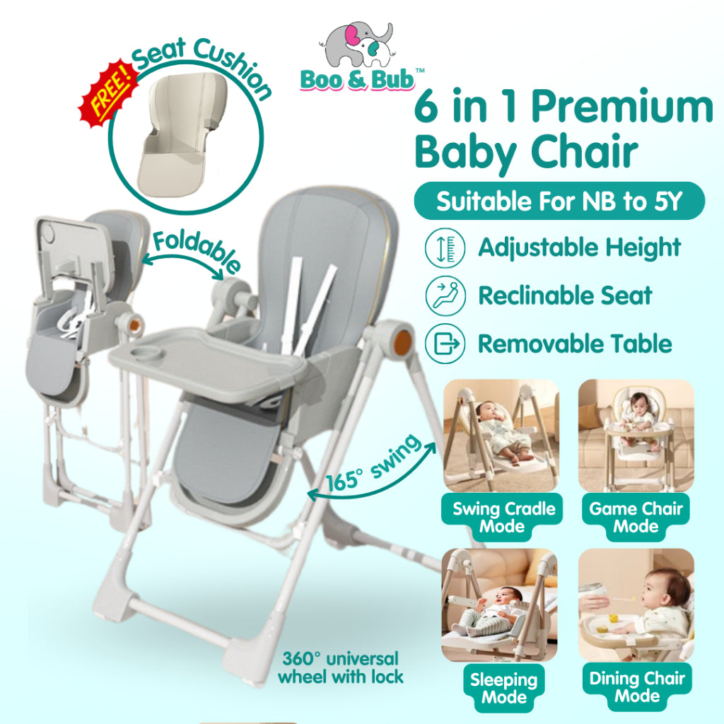 Boo&Bub 6in1 Premium Baby Chair | Adjustable height Multifunctional Portable Eating Safety Toddler Chair 6 Mode