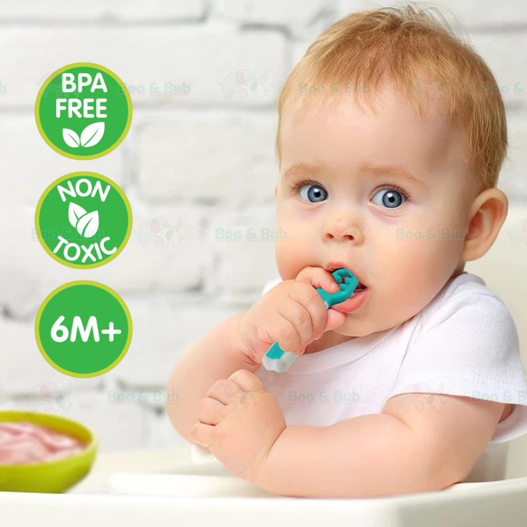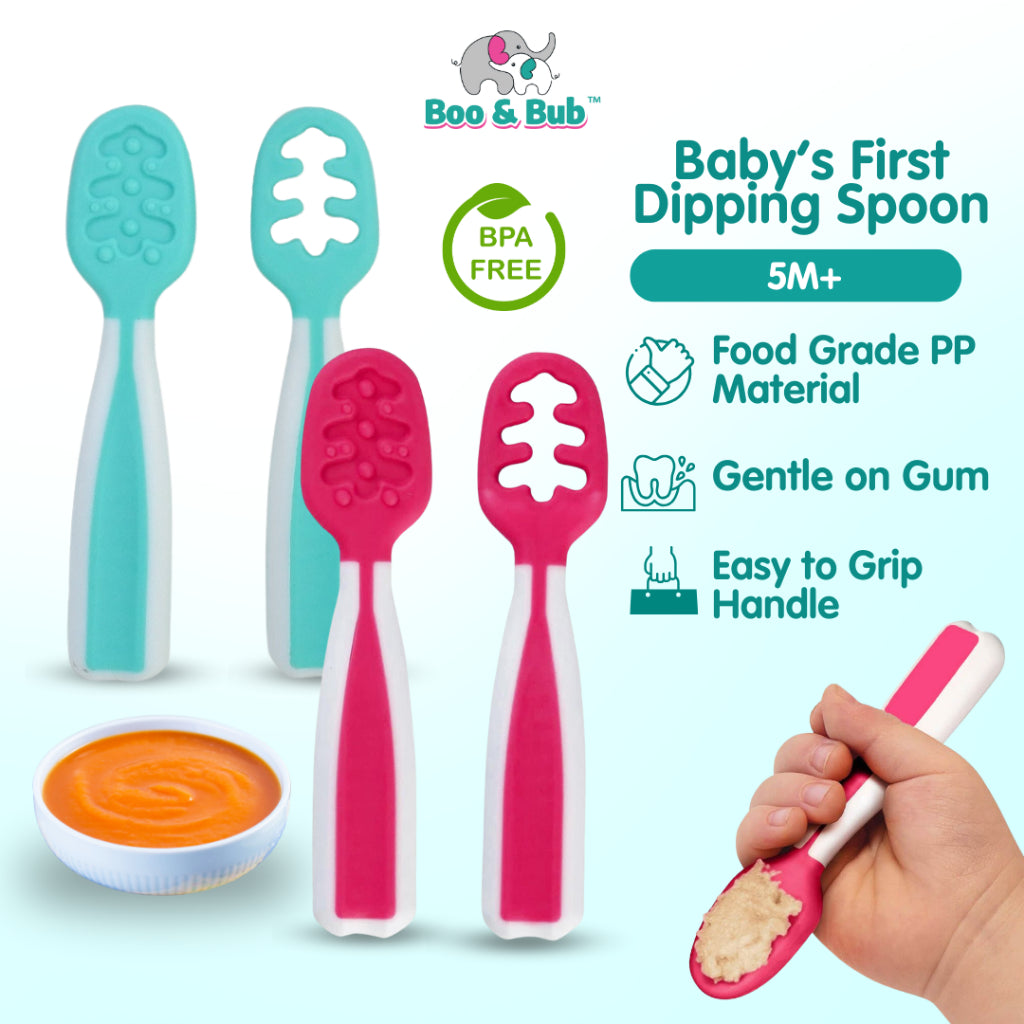 Boo & Bub Baby's First First Dipping Spoons Baby Pre-Spoon Set 2 Stag6M+ Baby First Spoon BPA FREE Safe PP Material