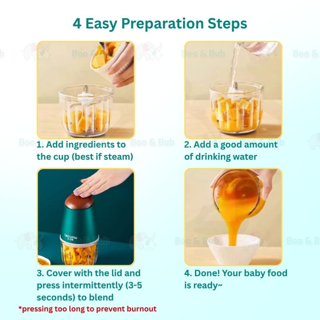 Boo & Bub Mini Blender Baby Food Grinder Processor One-button Start Stir Food Quickly Chopper