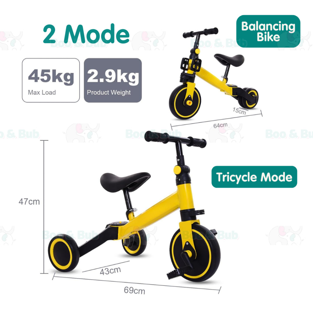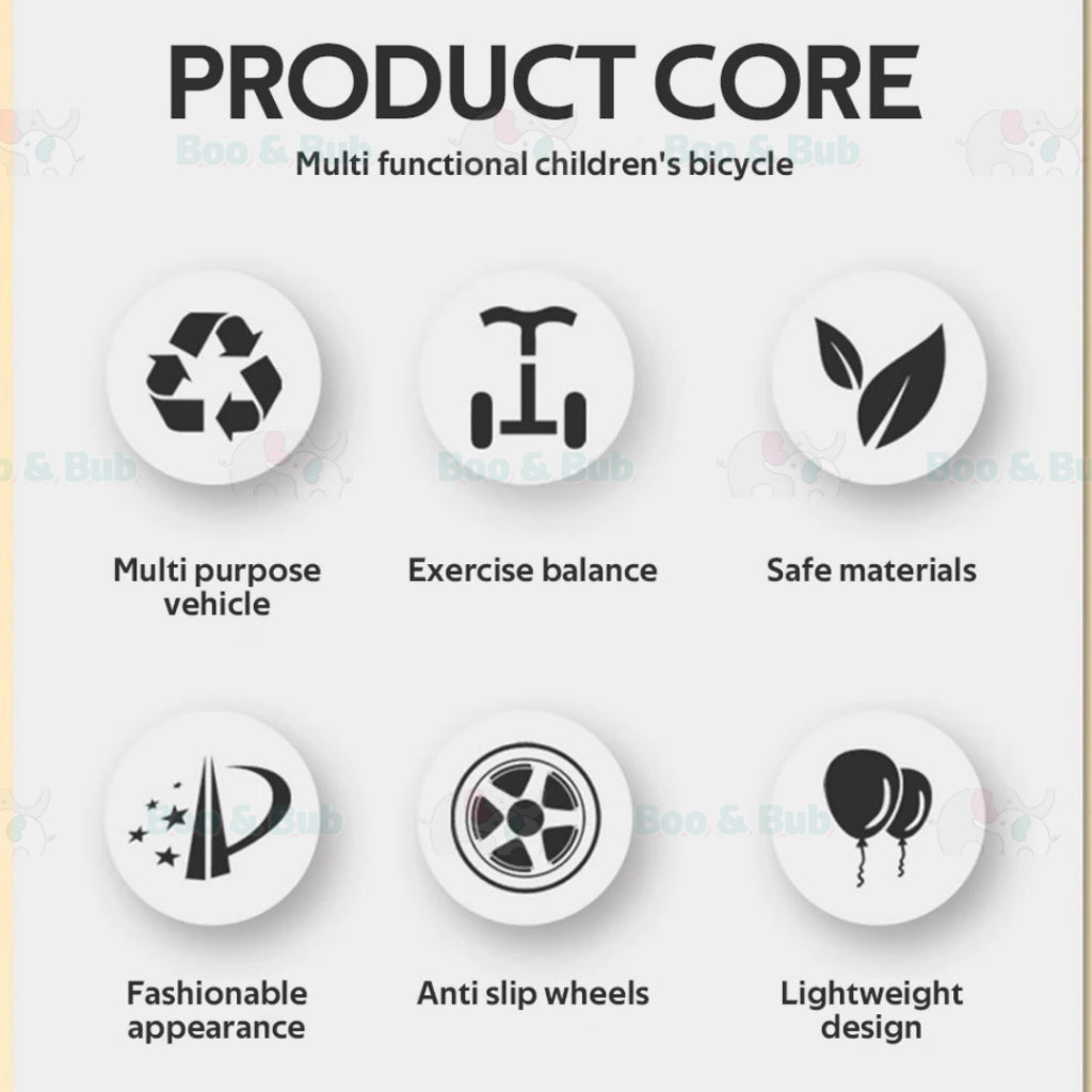 Boo&Bub NEW 2 IN 1 Balance Bike Multifunction Tricycle (3 Wheels) Children Scooter 二合一多功能三轮平衡车
