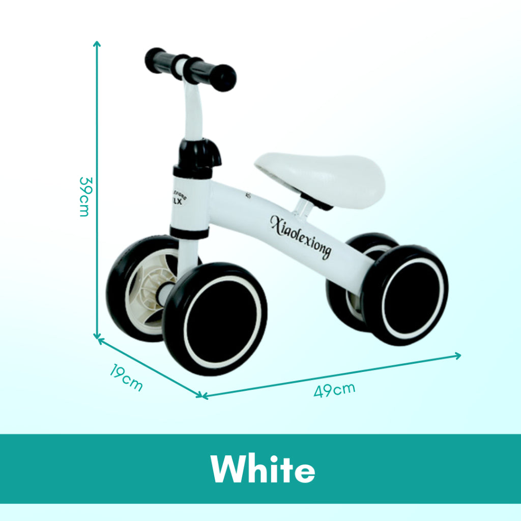 -Toddlers will learn to ride and balance with this balance bike! With 4 large wheels, big grip handles and cool colors it is a real head-turner!