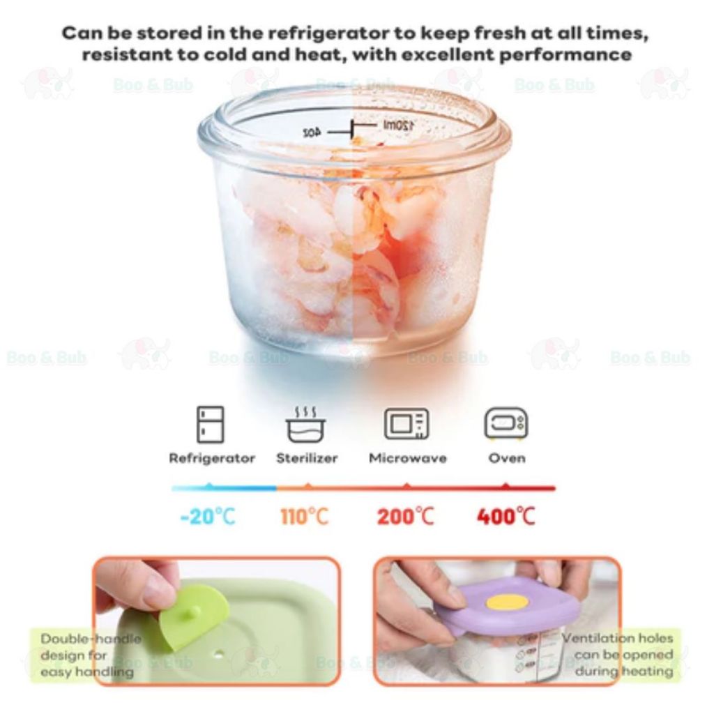 πBoo&Bubπ Airtight borosilicate glass food container Glass Container Bekas makanan kaca kedap udara 170ml