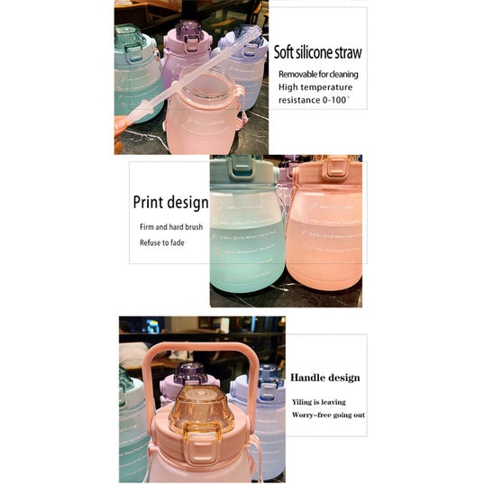 1.4/2L Large Water Bottle With Straw | Gradient Leakproof BPA Free Summer Sports Outdoor Girl Child Tumbler