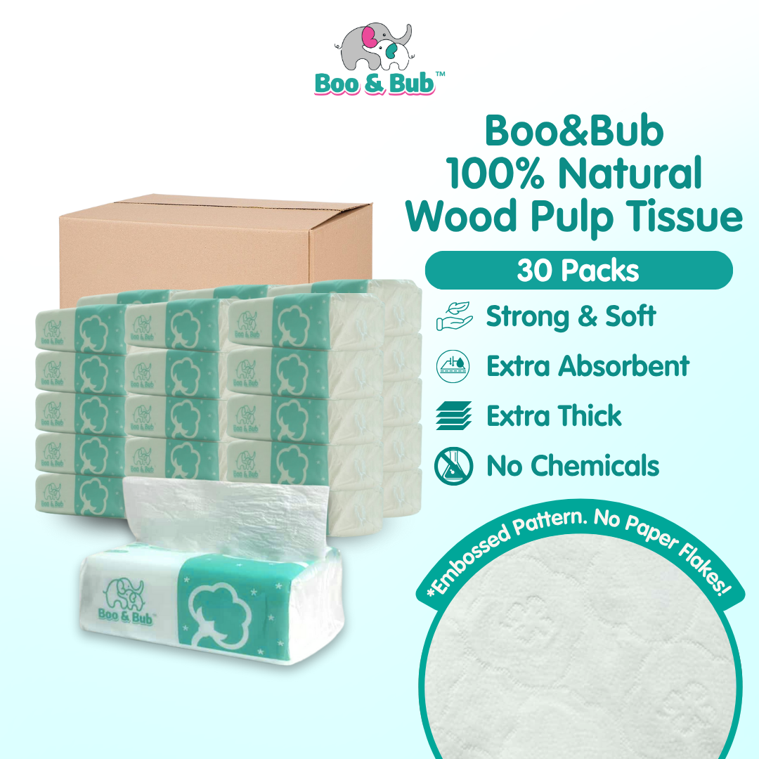[30 Packs/ Carton] Boo&Bub Bamboo Tissue 3Ply 1 Carton Soft Facial Tissue tisu