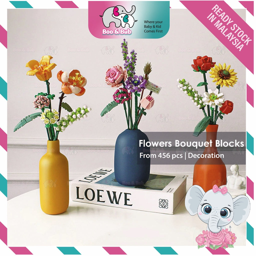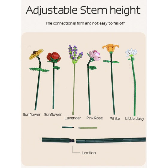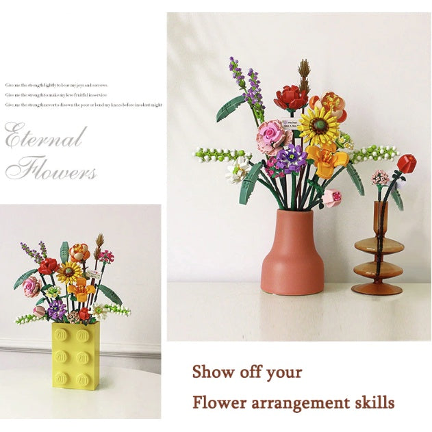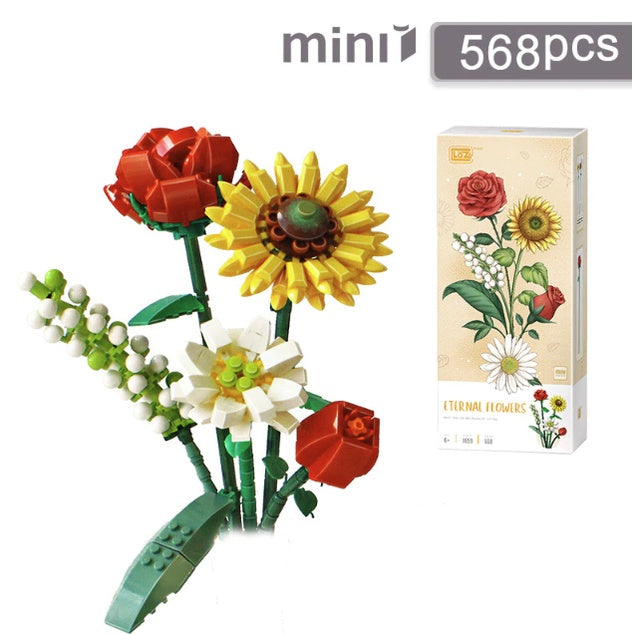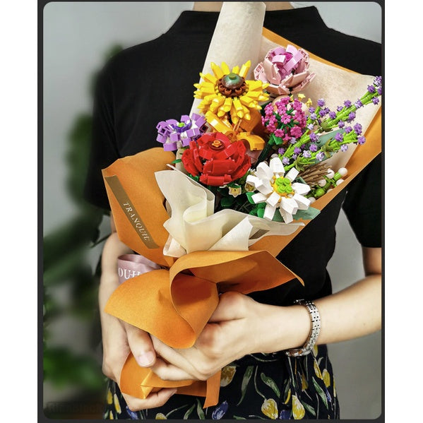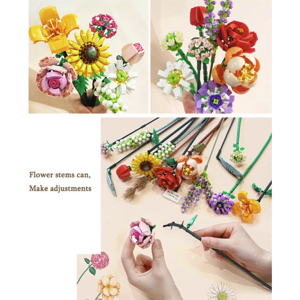 3D Flowers Bouquet Building Blocks | Lego Home Decoration Plant Romantic Floral Rose for Girl Mother