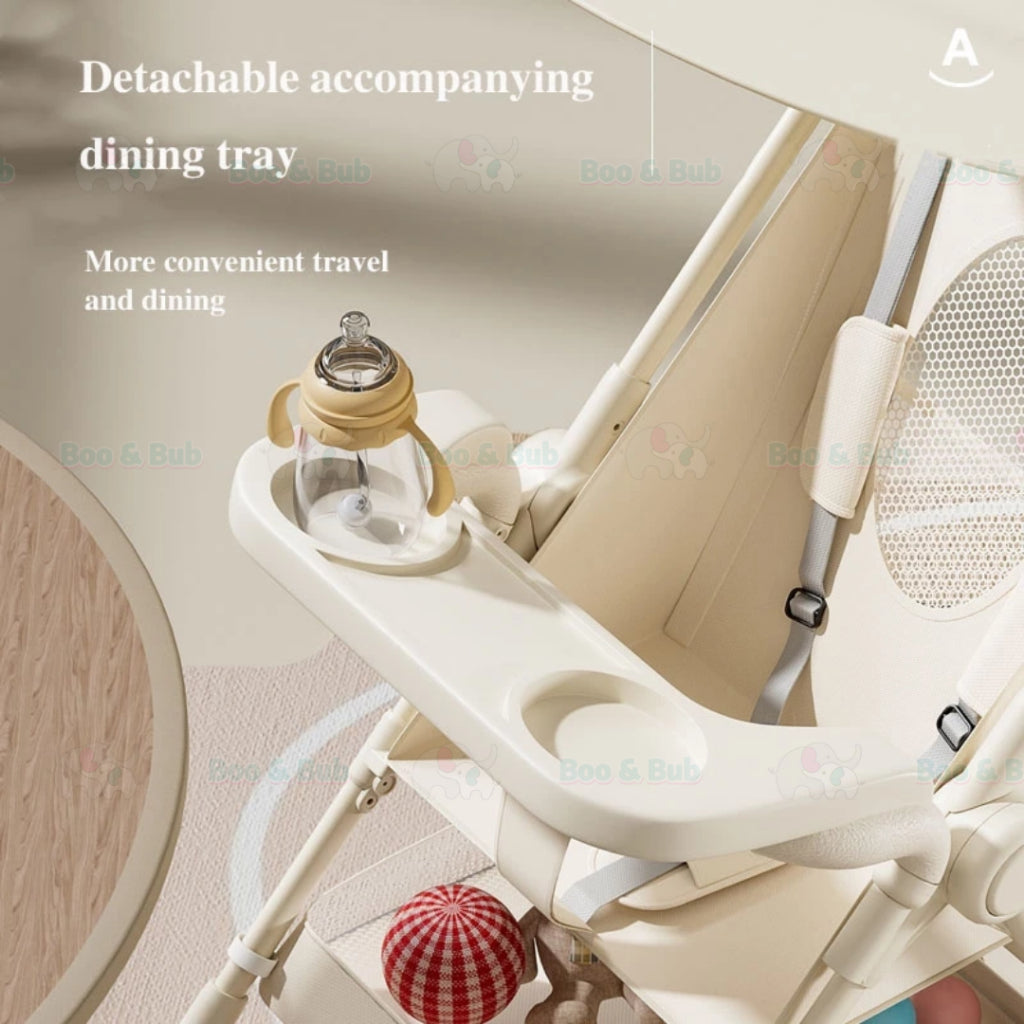 1. Removable dining tray, breathable backrest, seat belt design, PU armrest