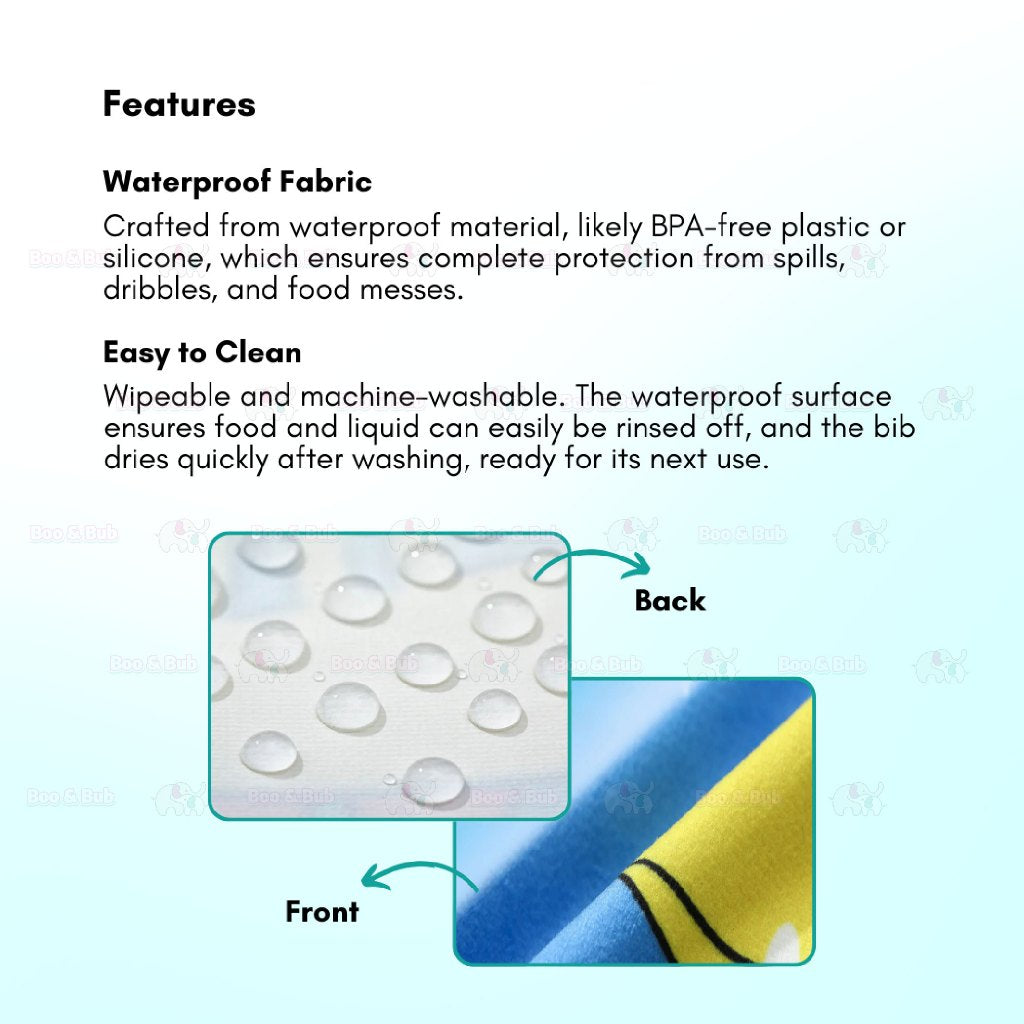 πΈSPILL RESISTANT, WATERPROOF & WASHABLE BIB : Made of water proof material which helps to keep the cloth safe and clean while feeding. This spill resistant bib is easy to wash as the liquid doesnβt stay on it and the bib does not soak the liquid.