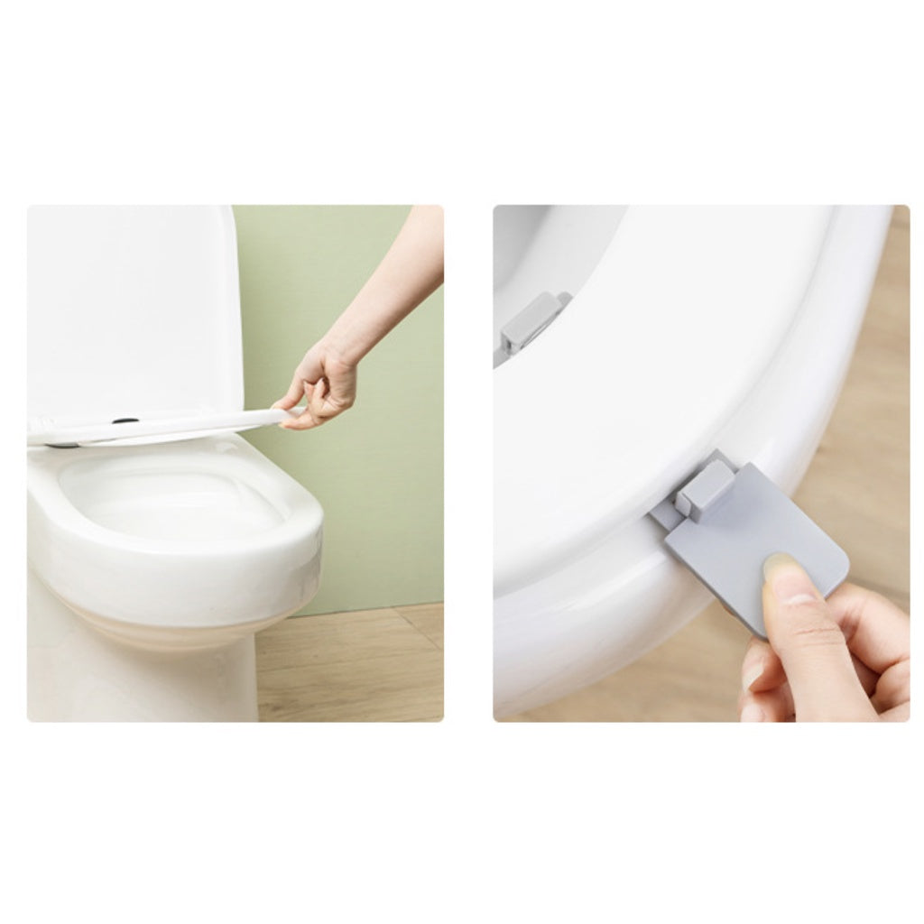 Place the toilet lifter on the bottom of the toilet seat, and lift by the handle.